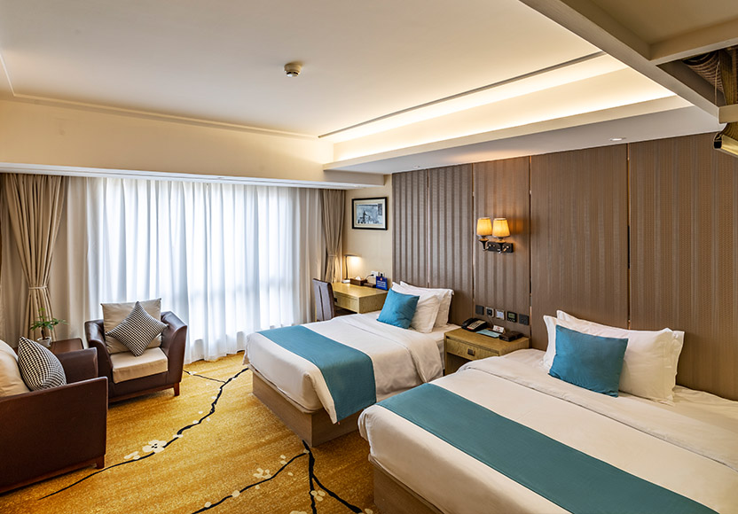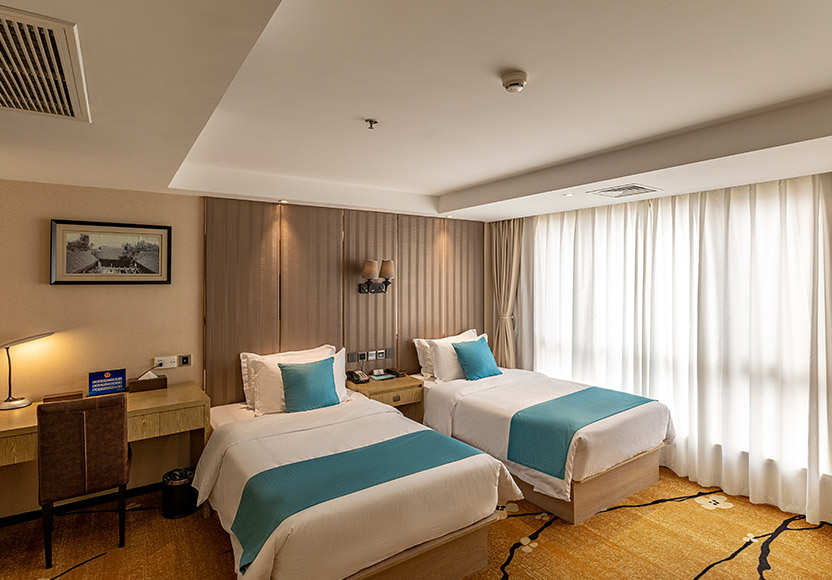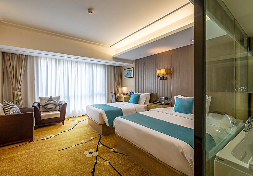 The hotel's guest rooms are well-equipped, with meticulously designed rooms featuring unique styles. They offer a range of supporting services including 24-hour hot water for bathing, cable TV, central air conditioning, mini-bars, and private safes. The wireless broadband internet in the rooms and Wi-Fi in public areas make it an ideal accommodation for business travelers.